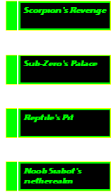 Face Chew…..Hold HP + LP + LK + HK- U Acid Puke…..U- D- D- D- HP (SWEEP) Prison Stage…..D- F- F- LP (CLOSE) Goro's Lair…..D- D- F- HK (CLOSE)